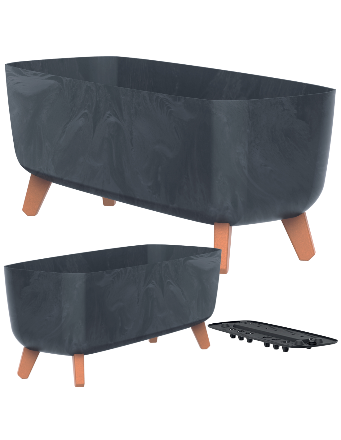 Szukasz eleganckiej i praktycznej doniczki o nowoczesnym wykończeniu betonowym? Nasza doniczka to doskonały wybór! Ta podłużna doniczka o długości 58 cm charakteryzuje się wyjątkowym designem, lekką formą uniesioną na imitujących drewno nóżkach oraz antracytowym efektem betonu, który doskonale wpisuje się w trendy wnętrzarskie, takie jak styl industrialny czy minimalistyczny.