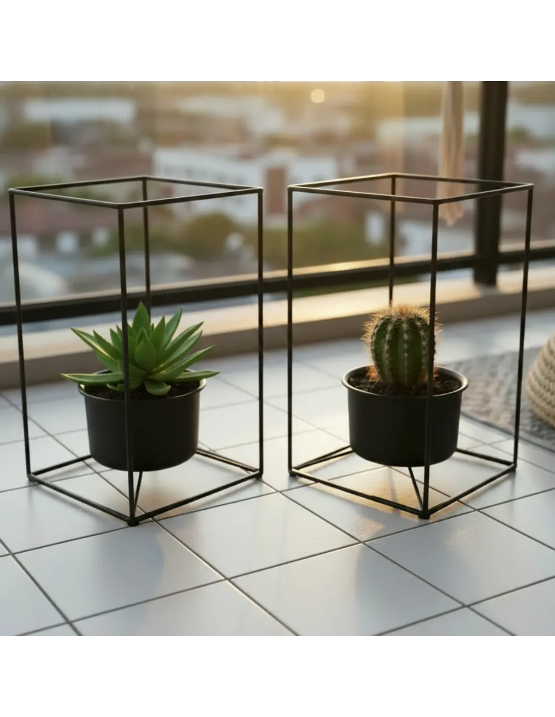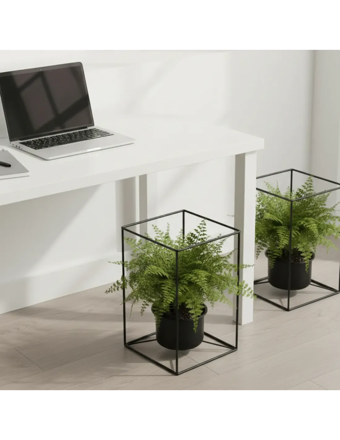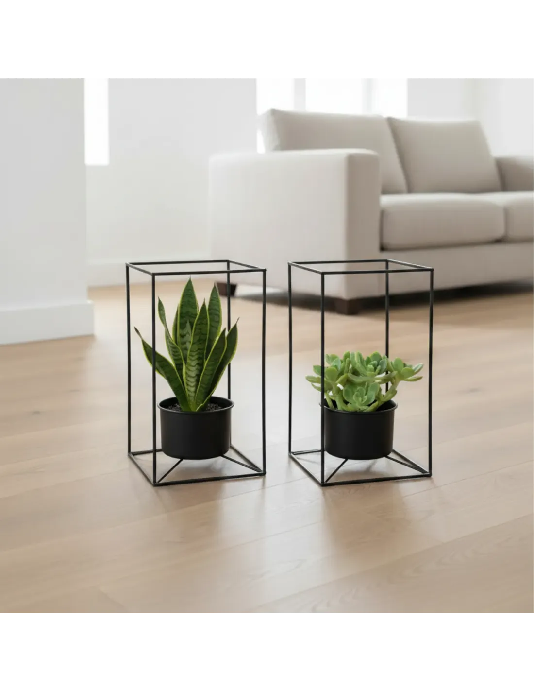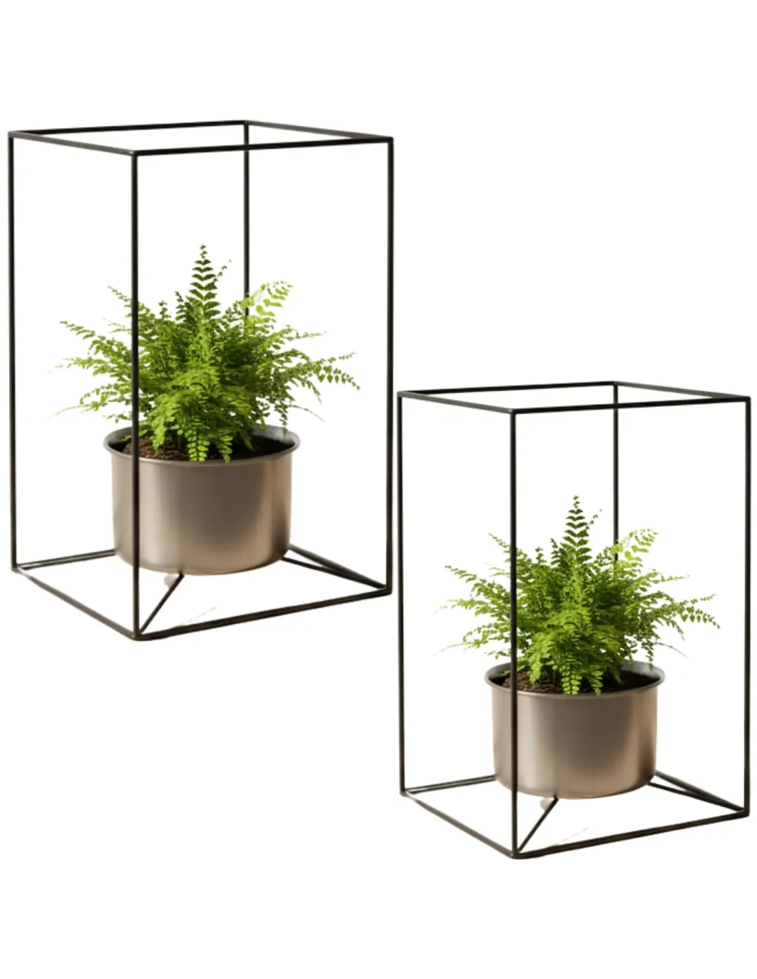 Nadaj swojemu wnętrzu wyjątkowy charakter dzięki zestawowi dwóch eleganckich, metalowych kwietników stojących w kolorze czarnym. Minimalistyczna, geometryczna forma oraz wysoka jakość wykonania sprawiają, że stojaki na kwiaty doskonale pasują do nowoczesnych wnętrz w stylu loft, industrialnym i rustykalnym.