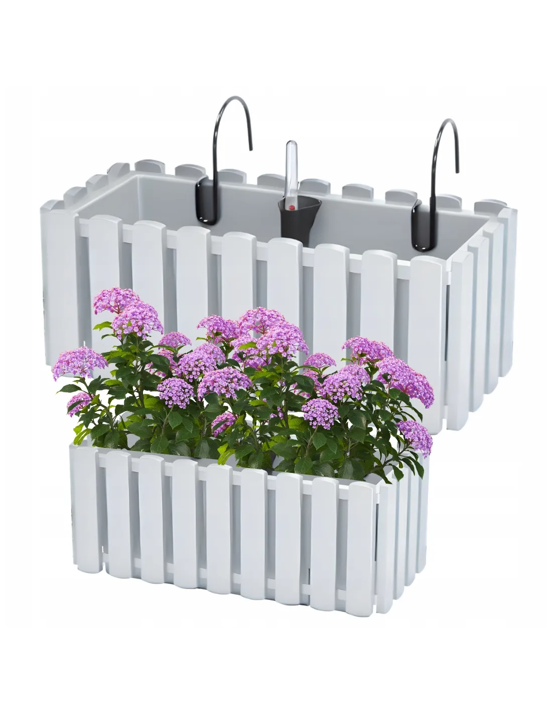 Dodatkowo w tym modelu dostaniemy haki do montażu, oraz system monitorowania poziomu nawodnienia co znacznie ułatwi nam dbanie o rośliny.