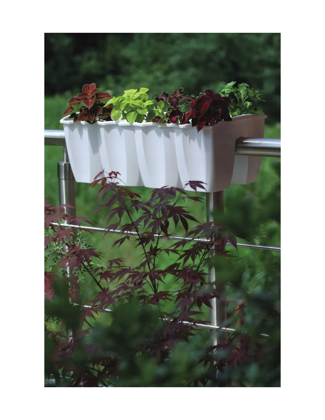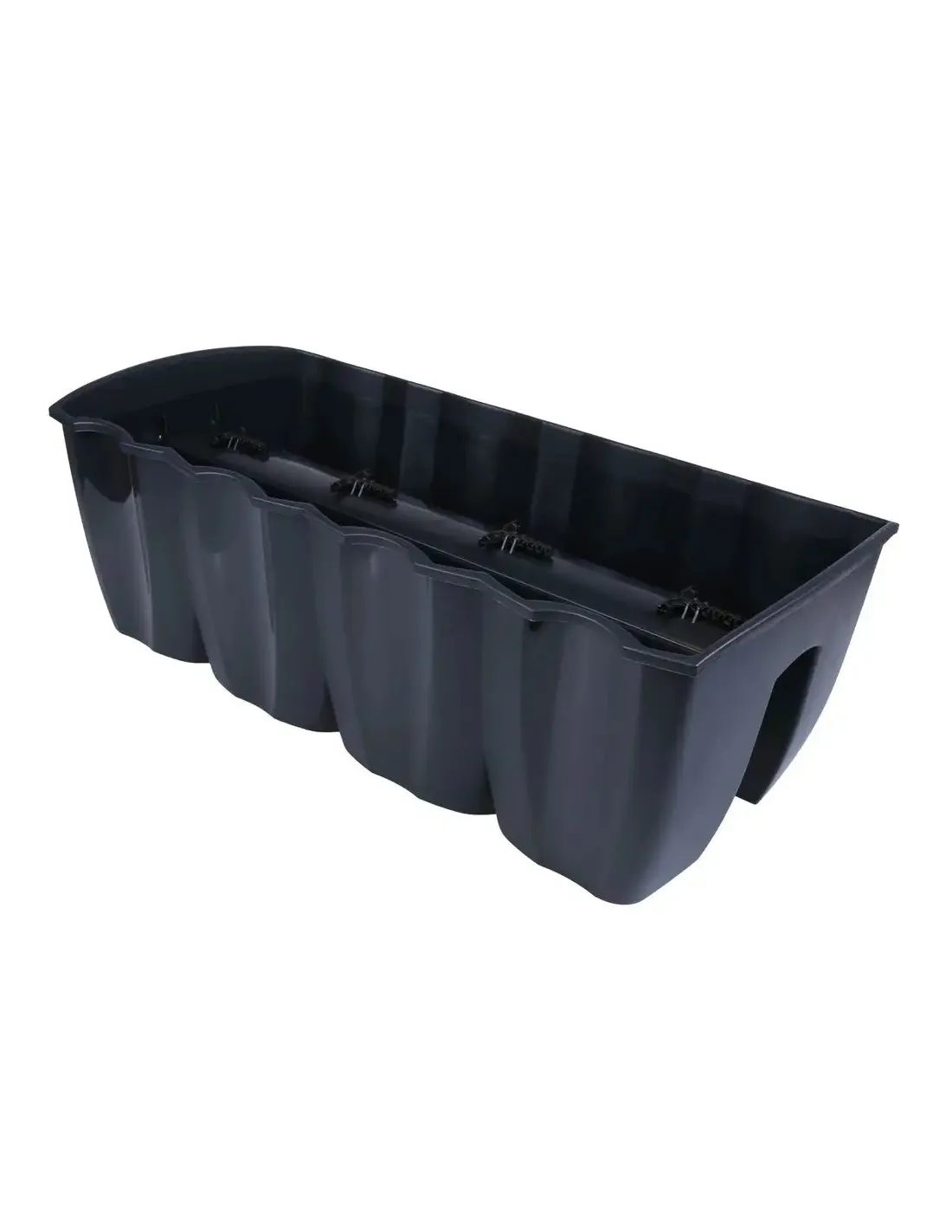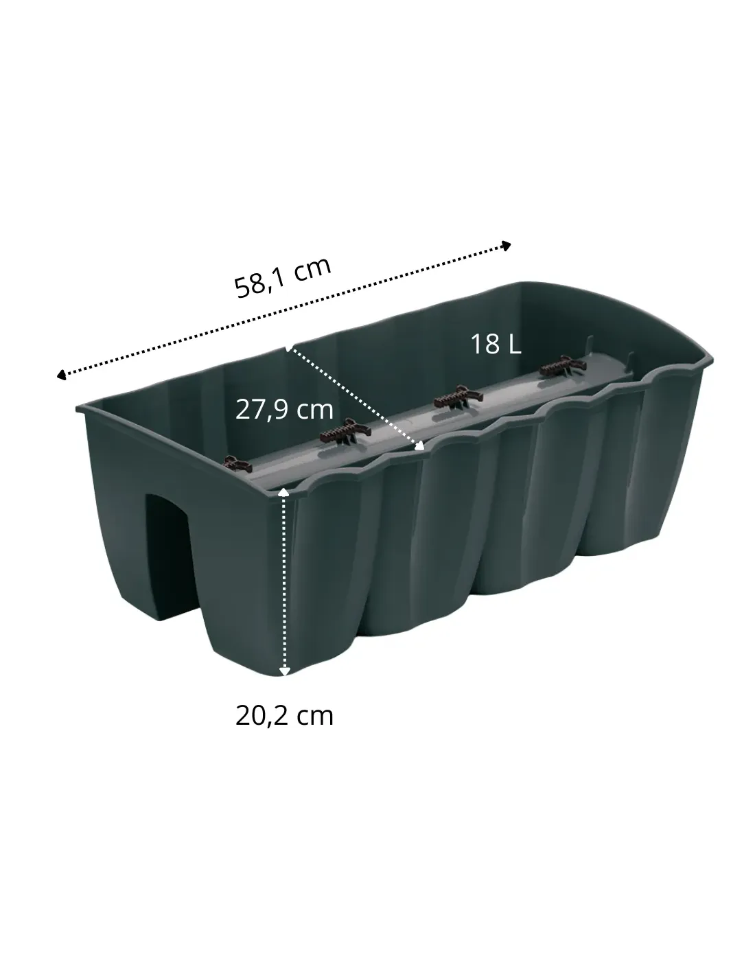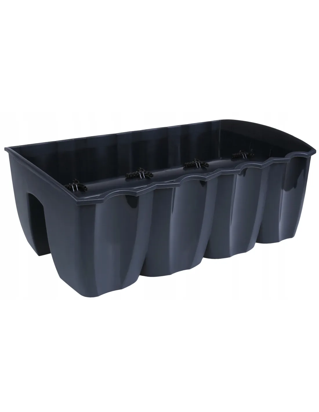 Doniczka WAVE marki Levanto jest idealnym rozwiązaniem dla aranżacji swoich balkonów. Zajmuje miejsce po obu stronach balustrady, dlatego robi wrażenie oglądana zarówno z zewnątrz, jak i ze środka mieszkania. Odporna na działanie promieni słonecznych i uszkodzenia mechaniczne. Dzięki powierzchni odpornej na promienie UV, donice zachowują swój kolor, a struktura ich materiału jest odporna na pęknięcia, złamania oraz stłuczenia. Dlatego mogą być używane zarówno w domu, jak i w ogrodzie. Dzięki prostemu, uniwersalnemu designowi produkt doskonale nadaje się do sadzenia wszelkiego rodzaju roślin zielonych oraz kwiatów. Wgłębienie w podstawie skrzynki oraz specjalne uchwyty umożliwiają szybki, łatwy i bezpieczny montaż produktu na balkonowej barierce.