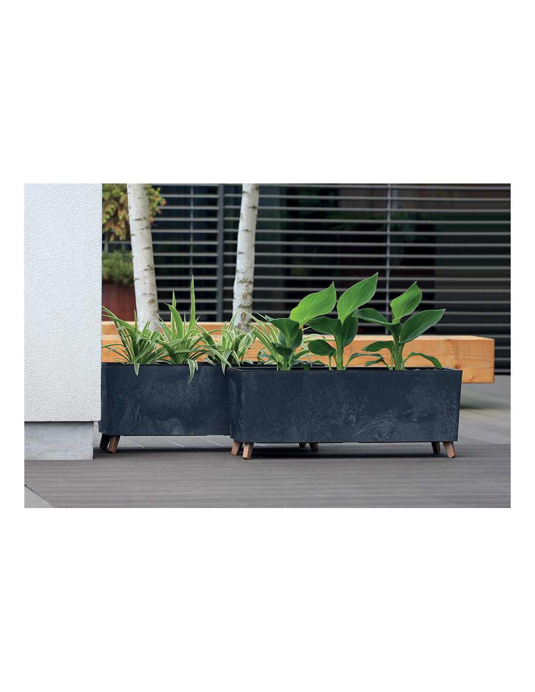 Nasza donica-skrzynia o długości 77 cm, wysokości 30 cm i szerokości 23,5 cm to doskonałe połączenie elegancji i wielofunkcyjności. Wykonana z wyjątkowo trwałego, a zarazem lekkiego tworzywa sztucznego, idealnie komponuje się zarówno w nowoczesnych, jak i industrialnych wnętrzach.