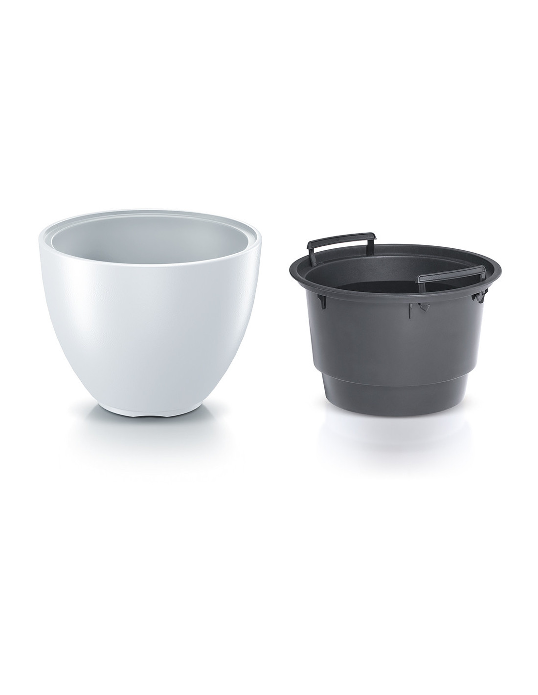 Doniczka jest wyposażona w praktyczny wkład, co oznacza, że nie musisz wypełniać jej całej podłożem dla roślin. Wkład z rośliną można łatwo wyjąć dzięki wygodnym uchwytom, dając ci swobodny dostęp do wnętrza doniczki.