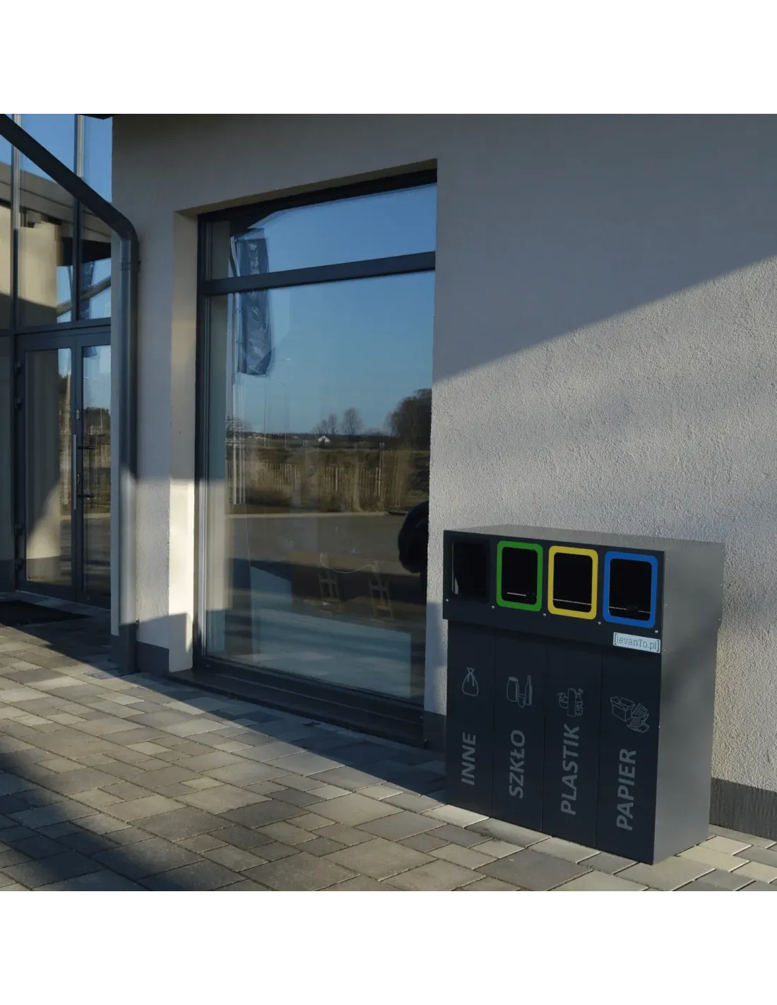 Odkryj innowacyjny kosz do segregacji z pokrywą - DENEB o 3 komorach o pojemności 70 litrów. Idealny do segregacji odpadów na zewnątrz budynku. Kosz modułowy DENEB jest odporny na warunki atmosferyczne. Kosz posiada solidną pokrywę, która chroni komory przed opadami deszczu i śniegu. Ważną cechą jest również budowa i umiejscowienie komór, co pozwala na sprawne wyrzucanie śmieci. Warto zaznaczyć, że kosz posiada zakrytą klapę, która minimalizuje nieprzyjemne zapachy.
