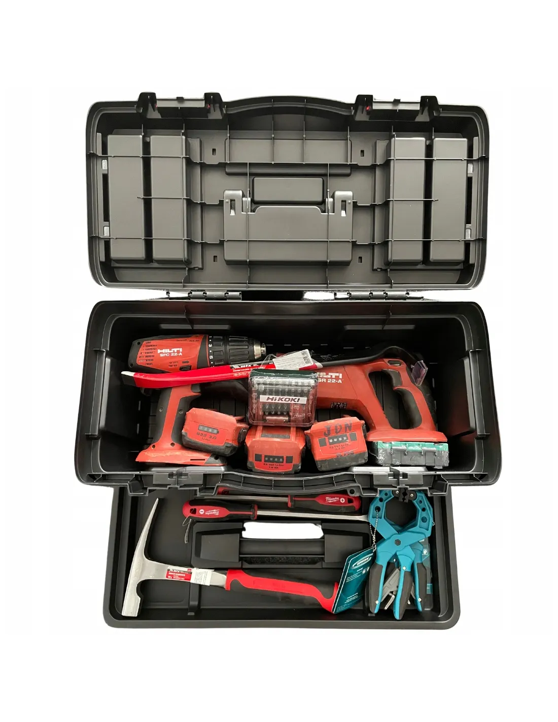 NARZĘDZIA ORAZ ELEKTRONARZĘDZIA PREZENTOWANE NA ZDJĘCIACH NIE SĄ CZĘŚCIĄ OFERTY. OFERTA DOTYCZY WYŁĄCZNIE SKRZYNKI NARZĘDZIOWEJ Z TACKĄ.