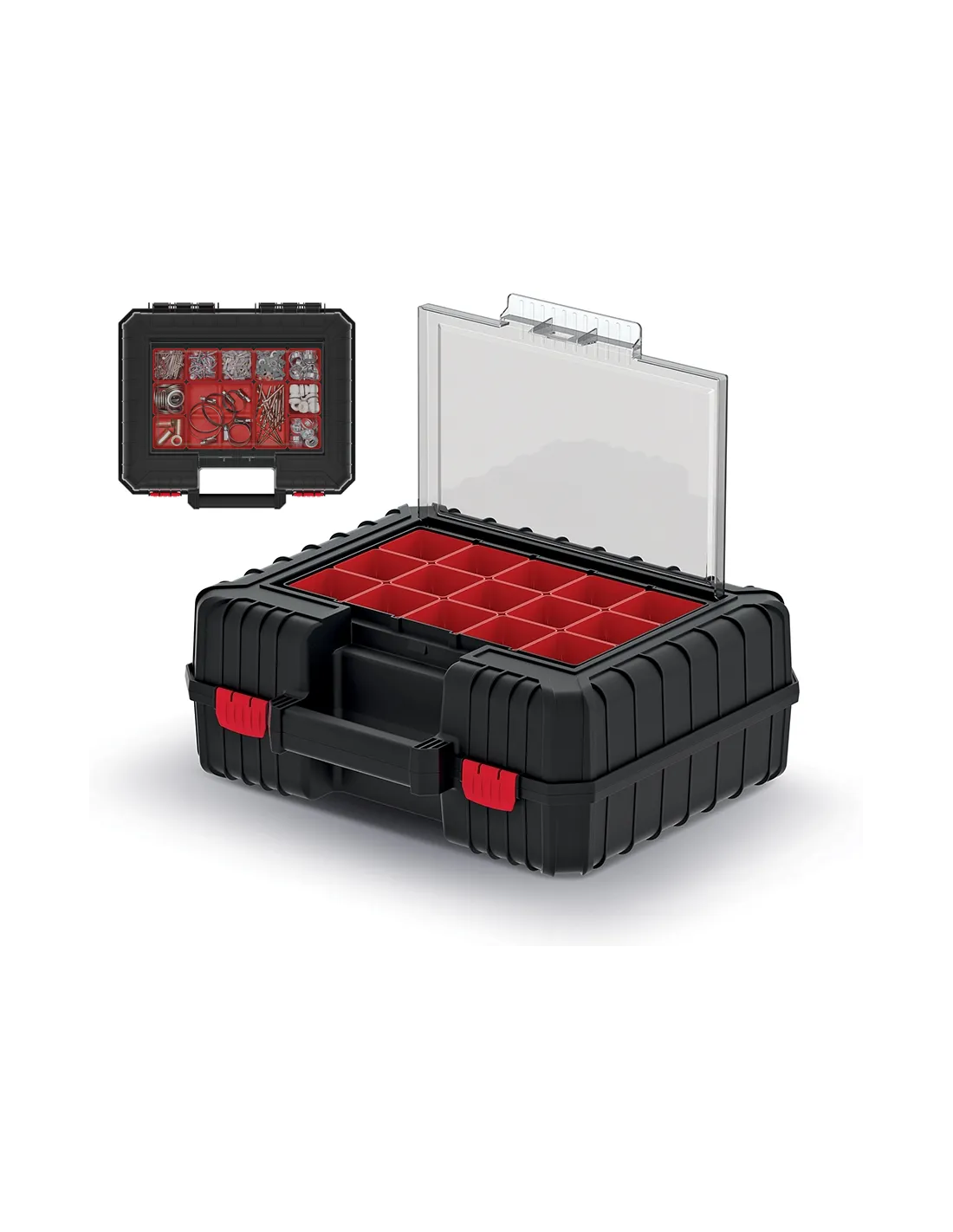- Transparentny organizer z pokrywą z poliwęglanu.