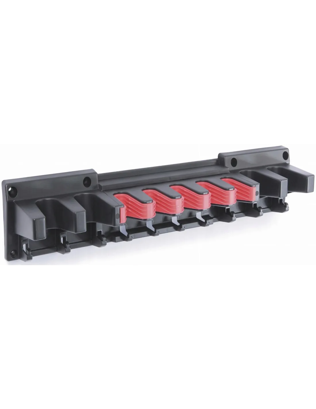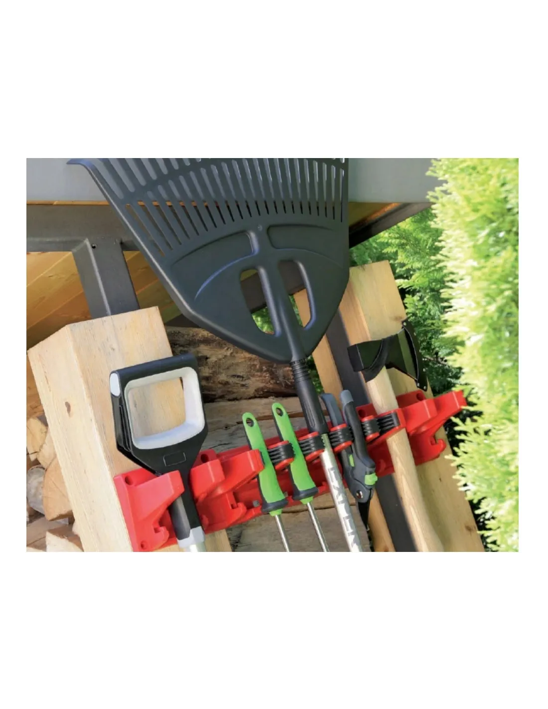 Praktyczny wieszak na narzędzia przydatny w każdym gospodarstwie domowym. Zamocowany w garażu lub domku pozwoli utrzymać nasze narzędzia w ładzie i porządku. Produkt sprawdzi się zarówno przy długich narzędziach z trzonkami jak i przy tych małych, które można zawiesić na sznurku. Nowoczesny uniwersalny ścienny wieszak z gumowym wykończeniem. Rozwiąże problemy z przechowywaniem ogrodowych narzędzi. Wprowadzi ład i porządek w każdym schowku. Można zamontować go do ściany jak i tablicy narzędziowej.