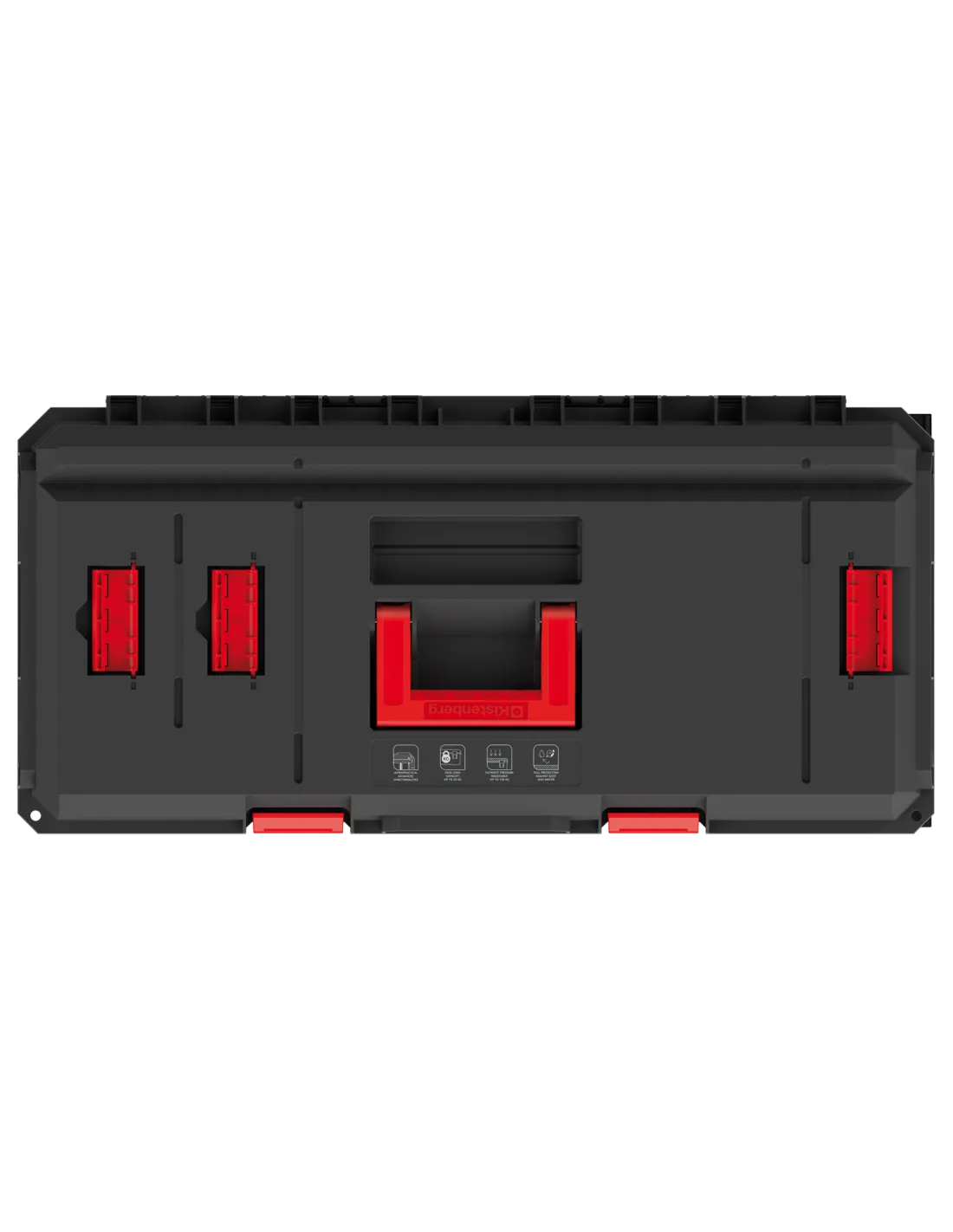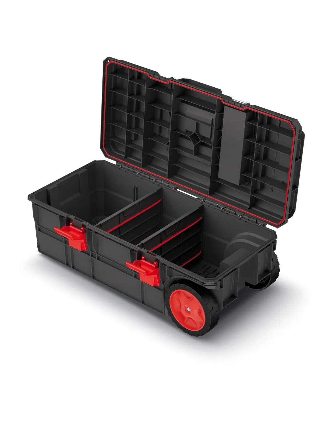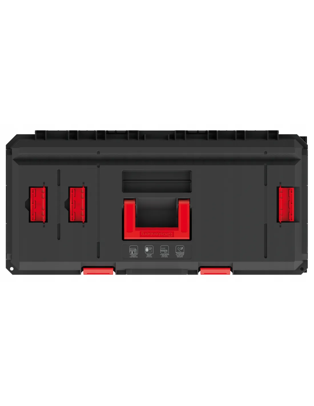 - kółka transportowe|komory organizacyjne w obudowie|moduły z możliwością rozdzielenia|przegrody organizacyjne|uchwyt do przenoszenia|wyjmowane organizery|zatrzaski zabezpieczające