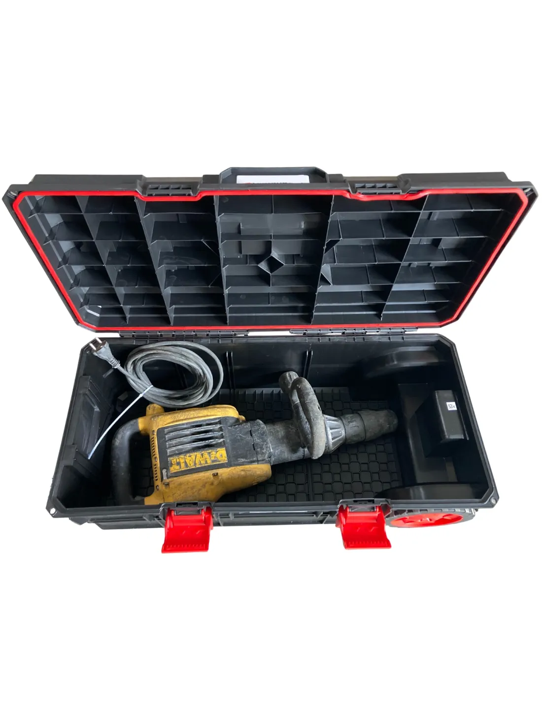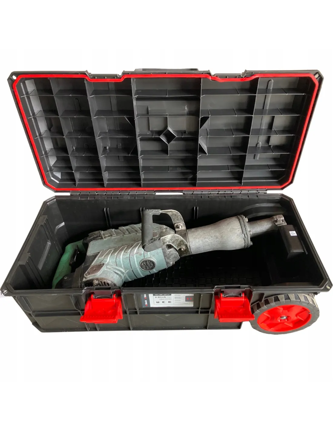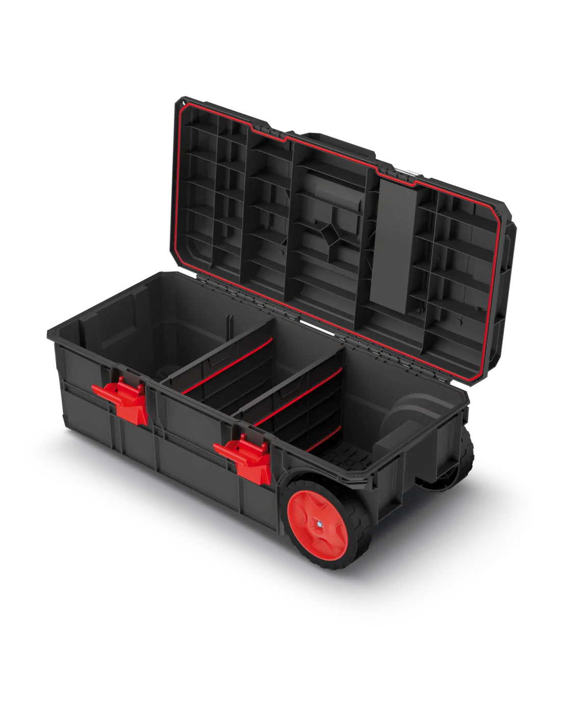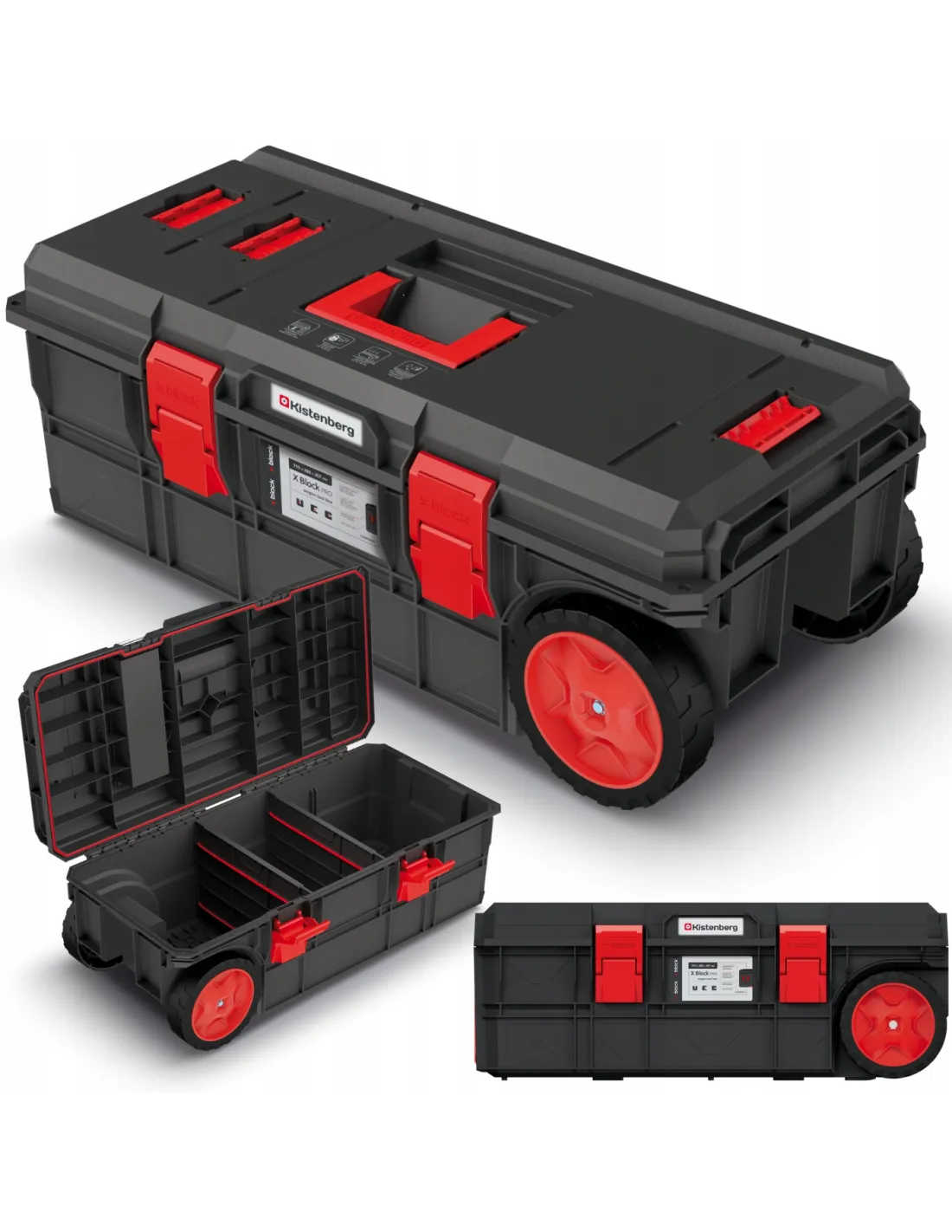 - kółka transportowe|komory organizacyjne w obudowie|moduły z możliwością rozdzielenia|przegrody organizacyjne|uchwyt do przenoszenia|wyjmowane organizery|zatrzaski zabezpieczające