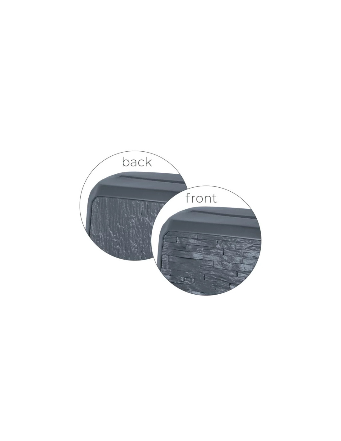 Nasz zbiornik to funkcjonalny zasobnik na deszczówkę o designerskim wyglądzie. Ten elegancki zasobnik na wodę deszczową, inspirowany strukturą tynku, stanowi atrakcyjną ozdobę ogrodu i doskonale współgra z elementami architektonicznymi otoczenia domu. Wyprodukowany z wysoce jakościowego tworzywa przy użyciu zaawansowanych technologii, zapewniających trwałość, odporność na zmienne temperatury i promieniowanie UV.