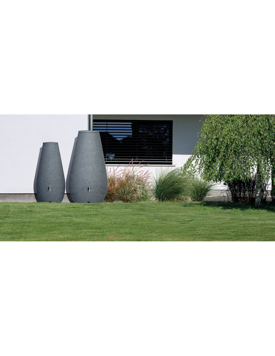 Nasz zbiornik to funkcjonalny zasobnik na deszczówkę o designerskim wyglądzie. Jego kształt inspirowany kroplą wody i struktura przypominająca tynk sprawiają, że doskonale komponuje się w nowoczesnych ogrodach. Wyprodukowany z wysoce jakościowego tworzywa przy użyciu zaawansowanych technologii, zapewniających trwałość, odporność na zmienne temperatury i promieniowanie UV.