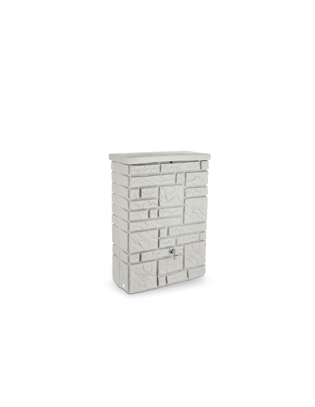 Nasz elegancki zbiornik to doskonały wybór na zbieranie deszczówki w ogrodzie! Ten dekoracyjny zbiornik na deszczówkę przypomina kamienny mur, doskonale komponując się z każdym sezonem. Wyposażony w praktyczne donice do sadzenia kwiatów, zbiornik ten dodaje uroku każdemu ogrodowi. Dodatkowo, zdejmowana misa ułatwia pielęgnację roślin. Woda jest dostarczana przez górny dopływ, a pobierana przez otwór na przedniej ścianie. Wykonany z wysoce jakościowego polietylenu, zbiornik ten jest odporny na warunki atmosferyczne i promieniowanie UV, co gwarantuje jego trwałość i kolor przez wiele lat.